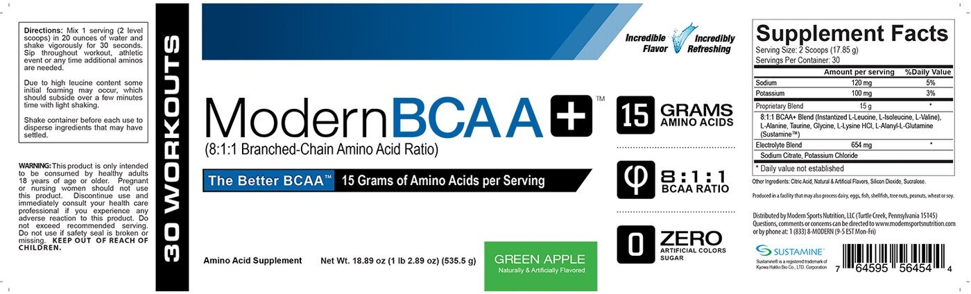 Modern Sports Nutrition Modern BCAA+ Green Apple Amino Acid Complex 535.5 g