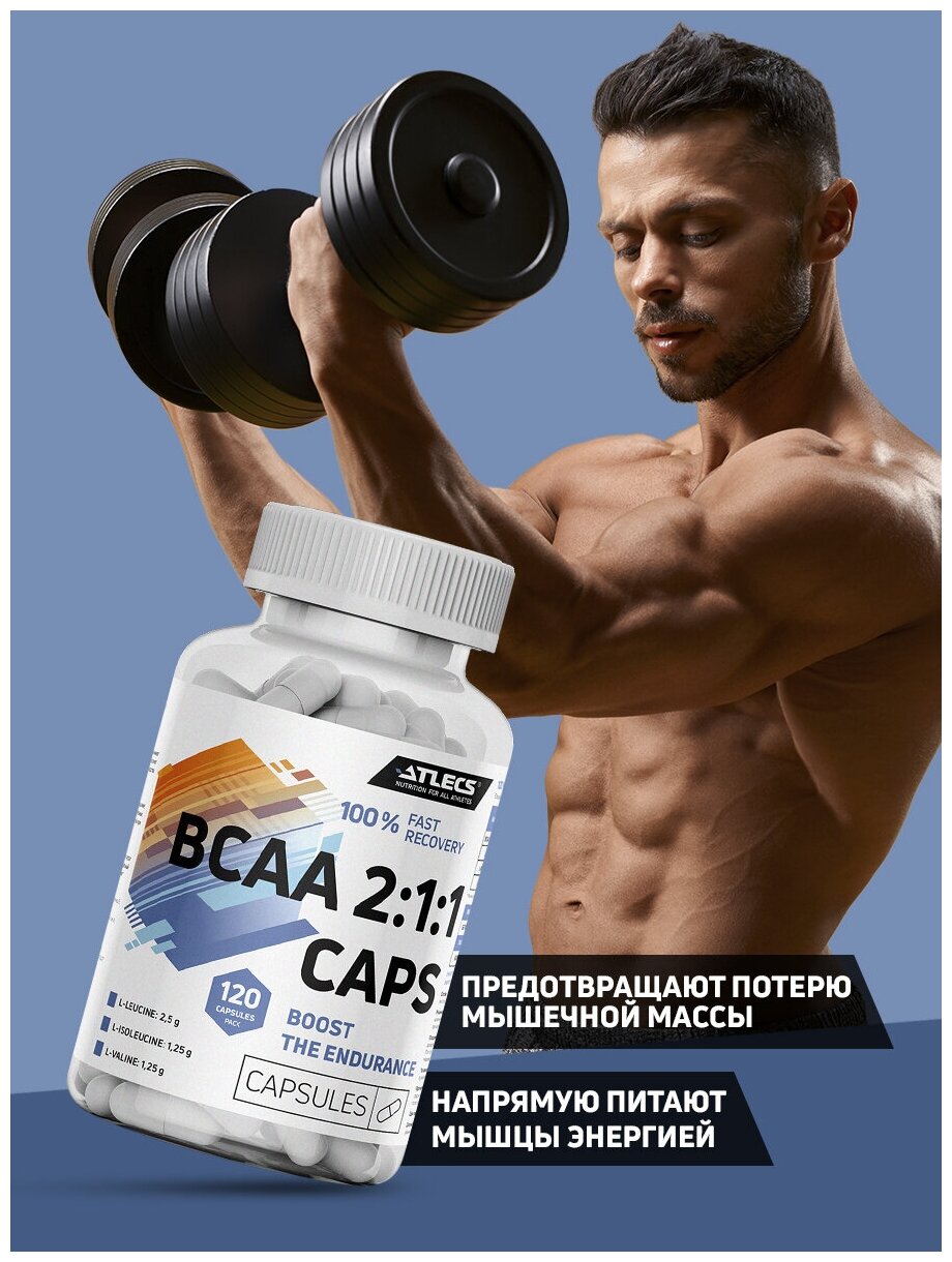 Amino acids for athletes BCAA capsules Atlecs BCAA 2:1:1 120 caps 120 tablets, neutral