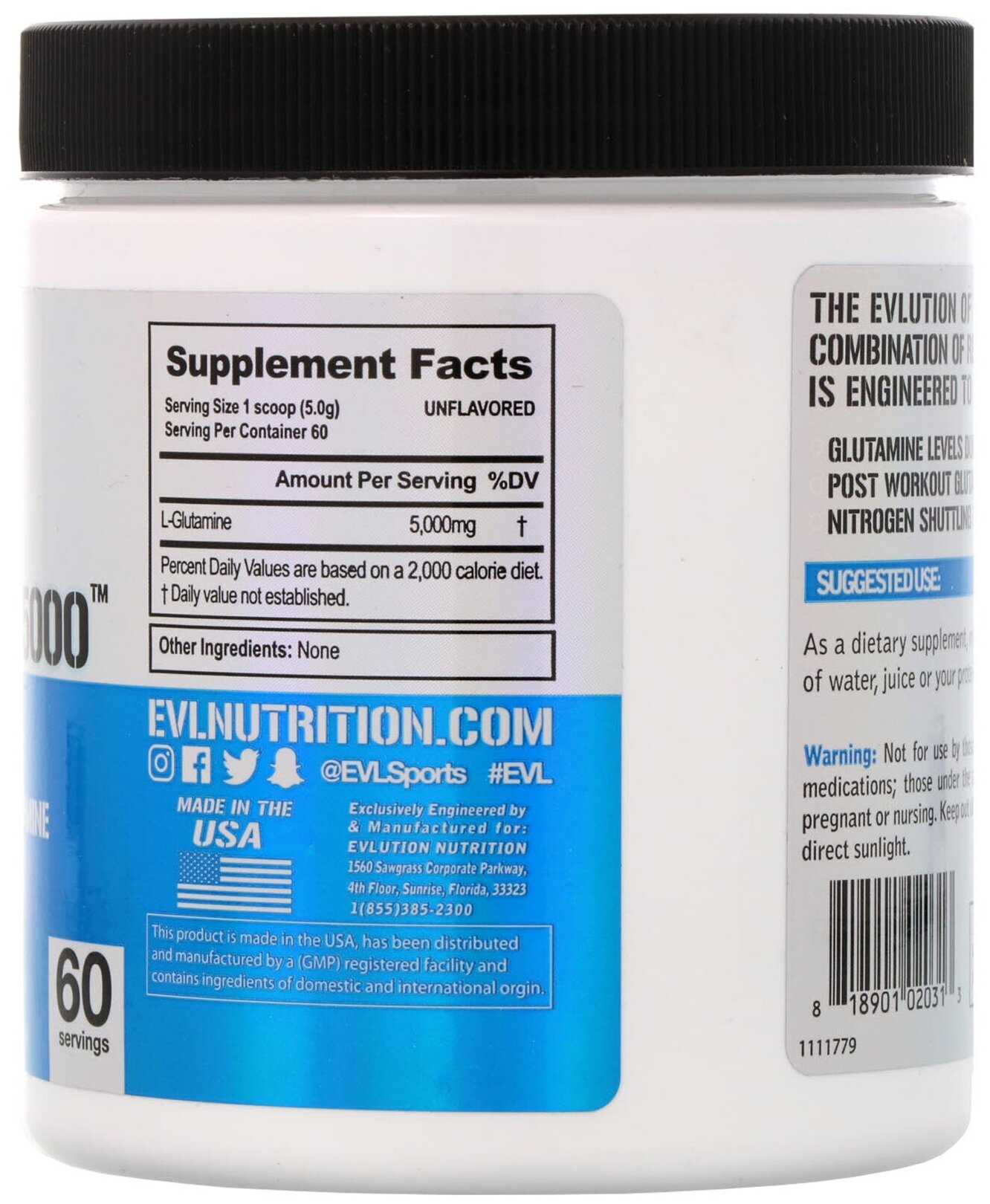 EVLution Nutrition Glutamine5000 Amino Acid 500g