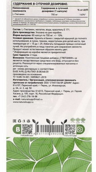 Type: amino acid, dosage form: capsules/tablets, main ingredient: glutamine