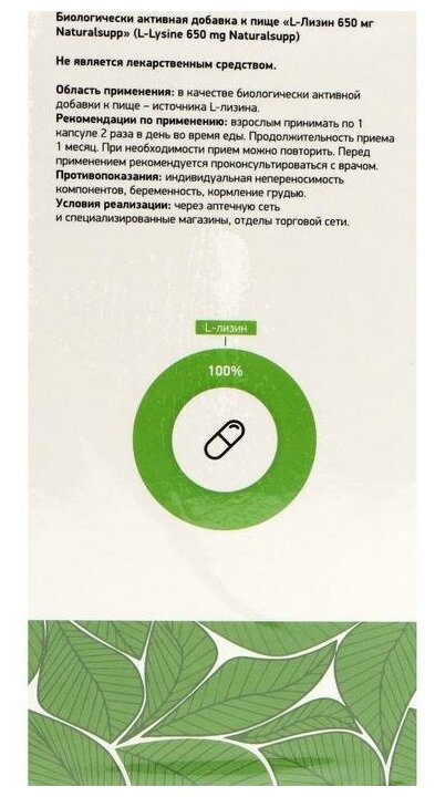 Type: amino acid, dosage form: capsules/tablets, main ingredient: lysine