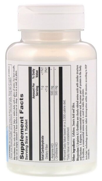 Type: amino acid complex, dosage form: capsules/tablets, main ingredient: arginine, ornithine, dietary features: no aspartame, no maltodextrin, no sucralose