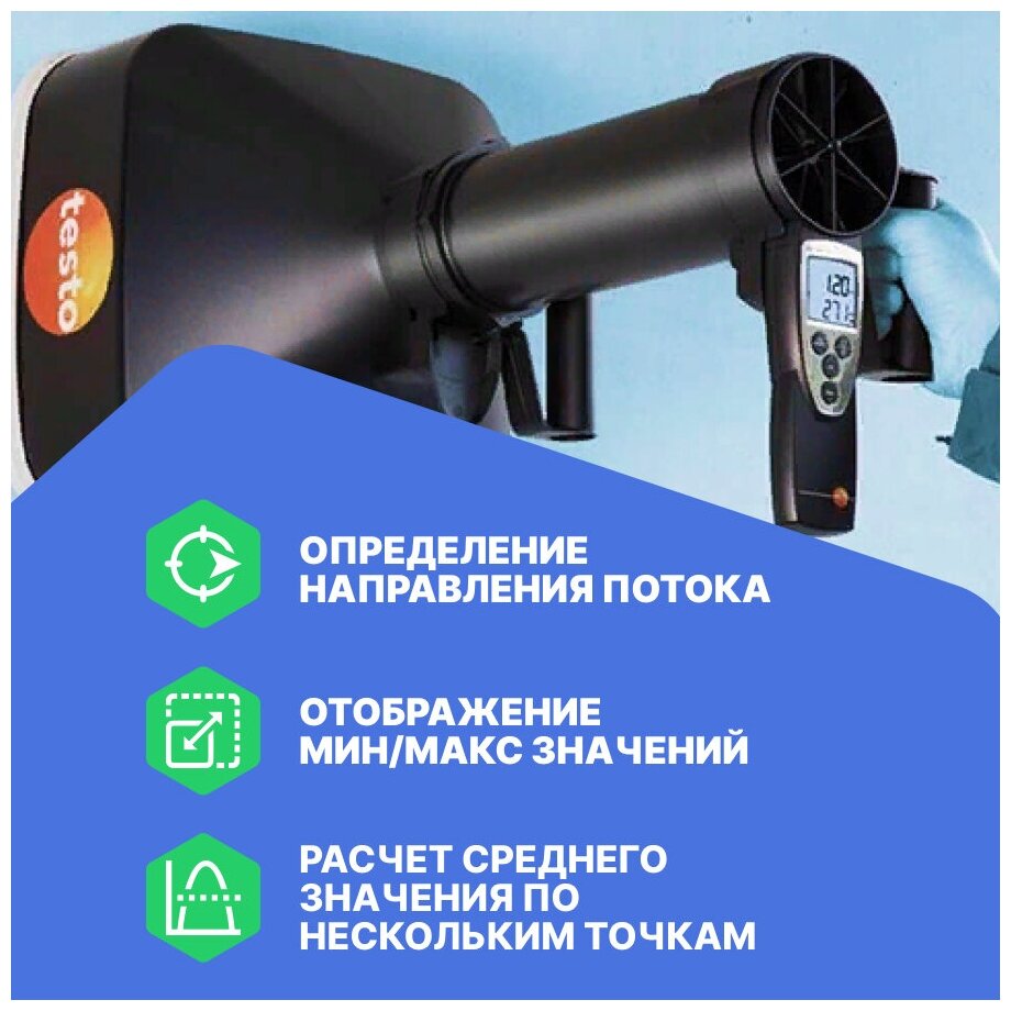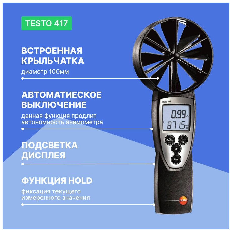 Anemometer with built-in impeller diameter 100 mm testo 417 - 1 pc.; Factory calibration protocol - 1 copy; Batteries - 1 pack.