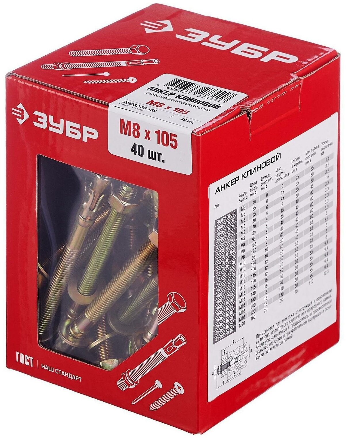 Wedge ZUBR 302032-08-105 М8x105 mm, 40 pcs.
