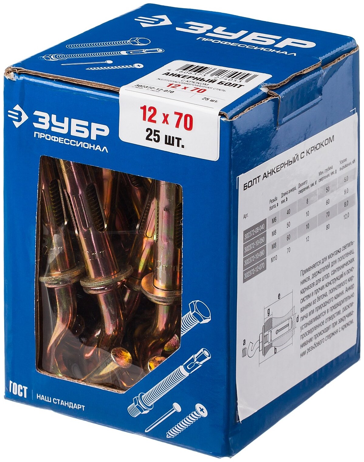 Wedge ZUBR 302372-12-070 12x70 mm, 25 pcs.
