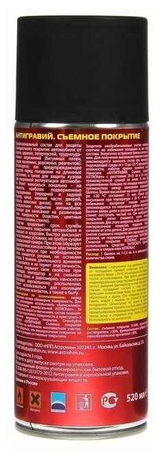 Type: liquid anti-gravity, scope: bumper, rims, bottom, body, application of liquid anti-gravity: aerosol, film surface: glossy, features: anti-corrosion, dismantling