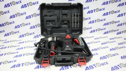 Perforator, plastic case, additional handle, wrench, carbon brushes, drill bits 3 pcs, flat chisel, pointed chisel, gear lubricant, boot, drilling depth limiter, instruction manual