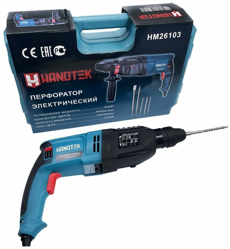 Chisel, additional handle, case, drilling depth gauge