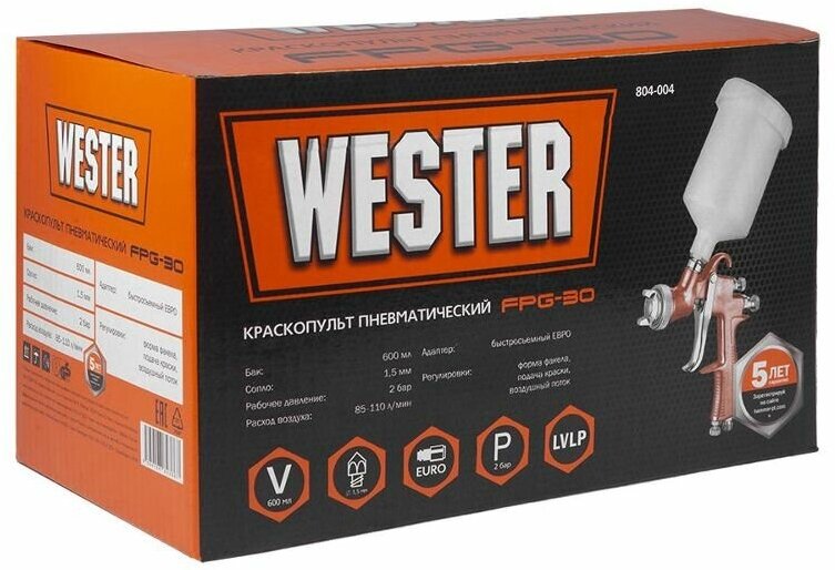 Spray gun WESTER FPG-30 LVLP, nozzle: 1.5 mm, max. 110 l/min, tank: 0.6 l