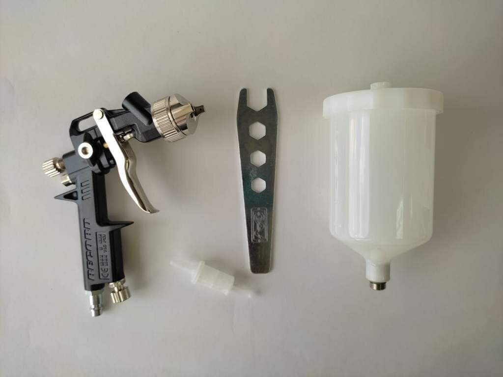 Type: pneumatic spray gun, tank volume: 0.60 l, spray method: HP, maximum nozzle diameter: 2 mm