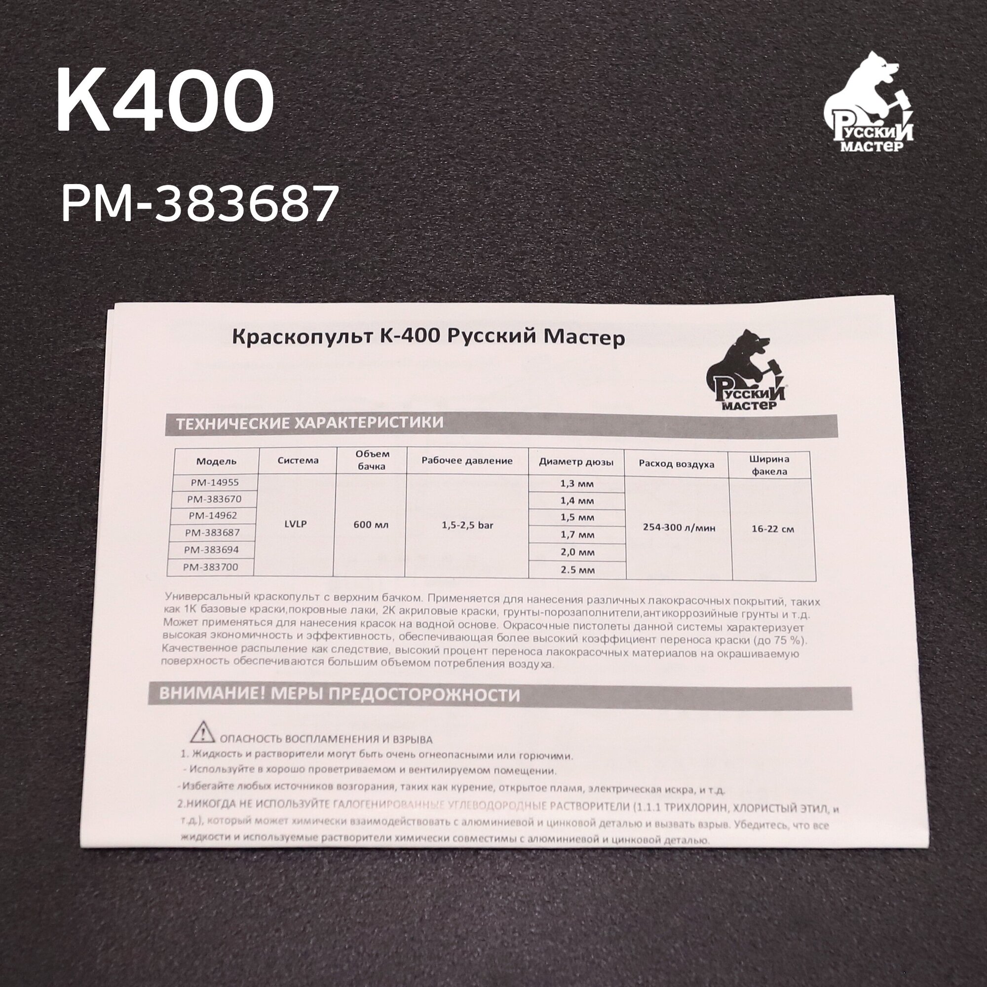 Type: pneumatic spray gun, tank volume: 0.60 l, spray method: LVMP, action type: double dependent, material supply type: top, material supply adjustment, maximum nozzle diameter: 1.70 mm, maximum width