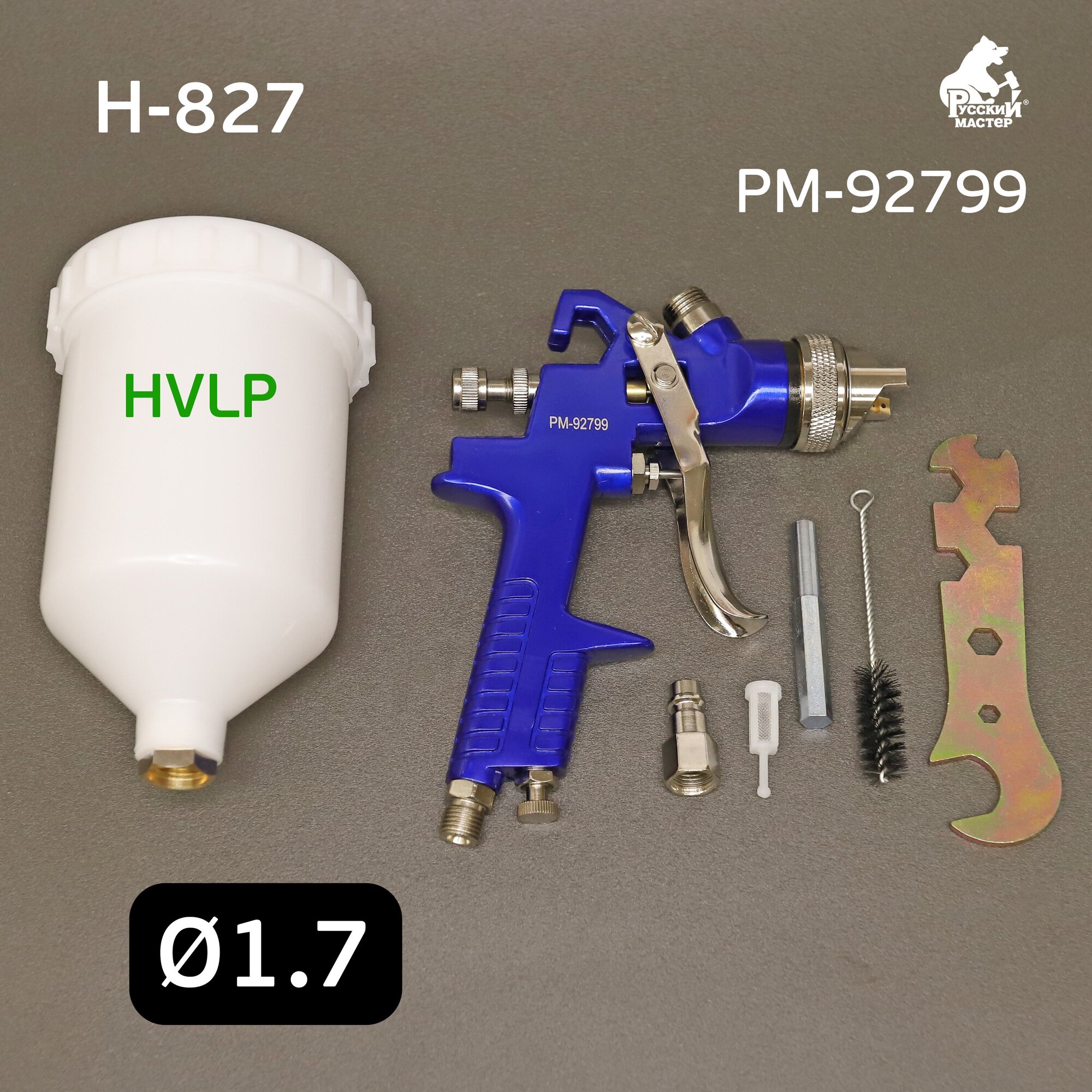 Type: pneumatic spray gun, tank volume: 0.60 l, spray method: HVLP, action type: double dependent, material supply type: top, material supply adjustment, maximum nozzle diameter: 1.70 mm, mixing type