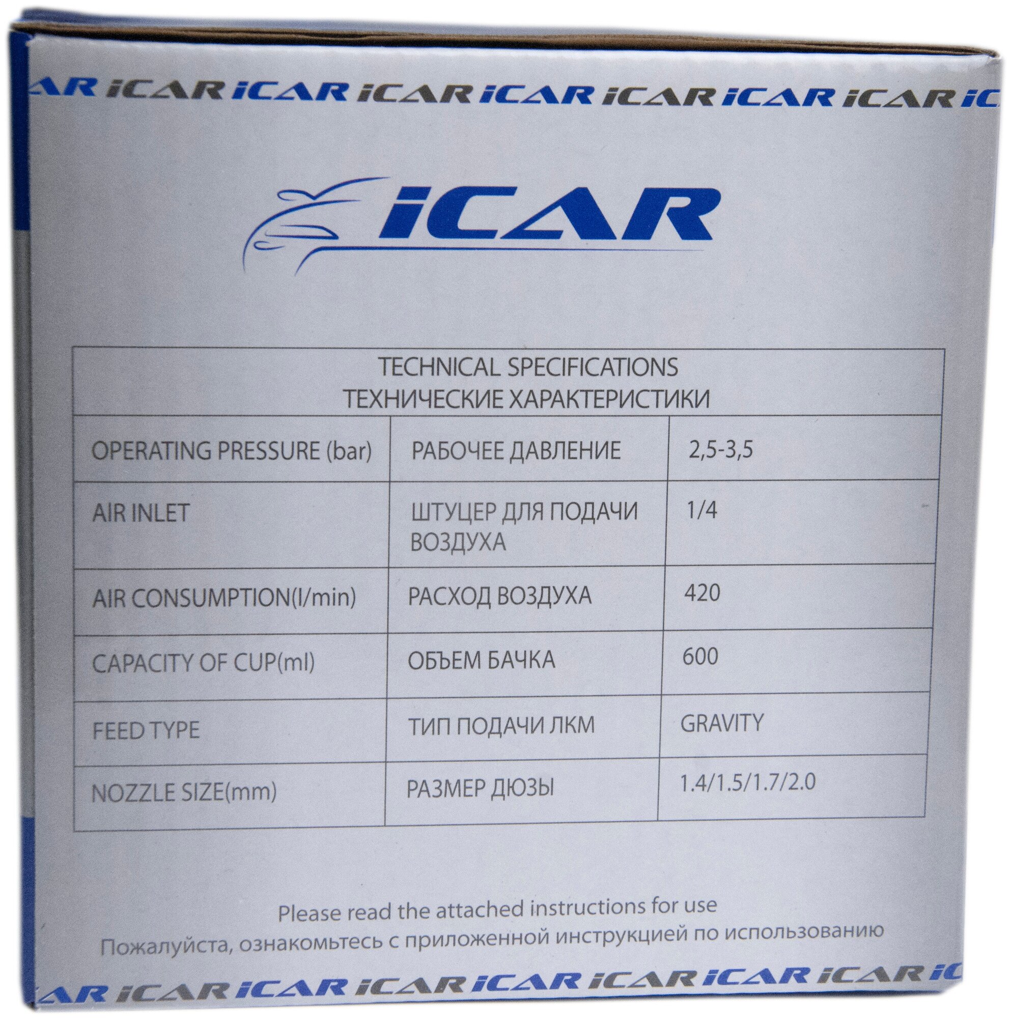Type: pneumatic spray gun, tank volume: 0.60 l, type of material supply: top, adjustment of material supply, type of mixing air and paint flows: internal, maximum spray width: 200 mm