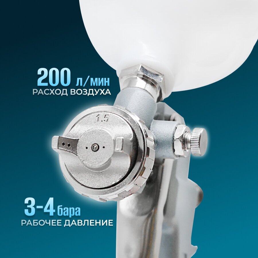 Type: pneumatic spray gun, tank volume: 0.60 l, spray method: LVLP, material supply type: top, maximum nozzle diameter: 1.50 mm