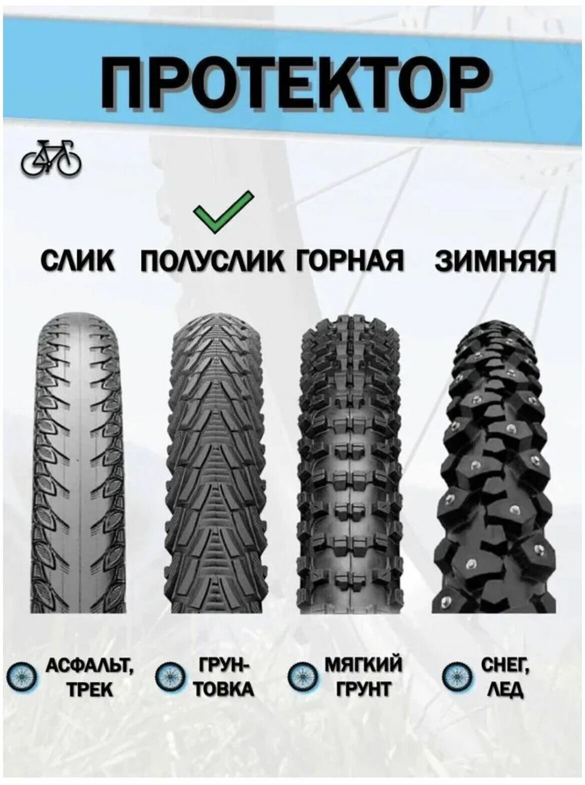 Type: tire, tread type: semi-slick