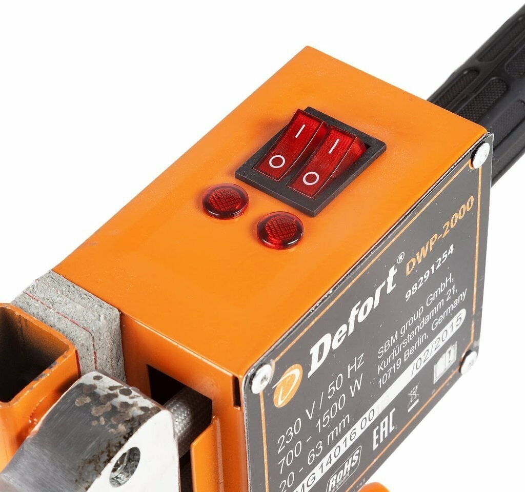 Method of pipe connection: bell-shaped, heater shape: xiphoid, type of welding nozzle: steam, power: 2000 W, type of temperature controller: thermostat, maximum heating temperature: 300 °C, type of apparatus: manual, if