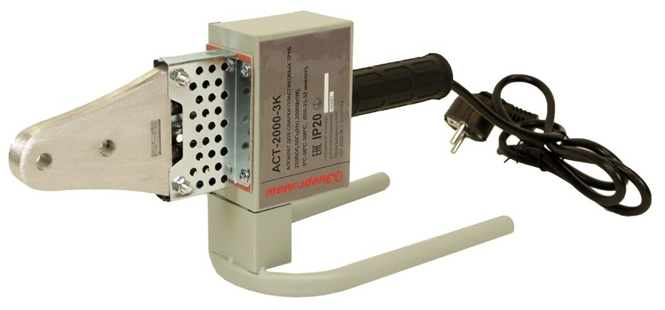 Method of pipe connection: bell-shaped, heater shape: xiphoid, type of welding nozzle: steam, power: 2000 W, type of temperature controller: thermostat, maximum heating temperature: 300 °C, type of apparatus: manual, if