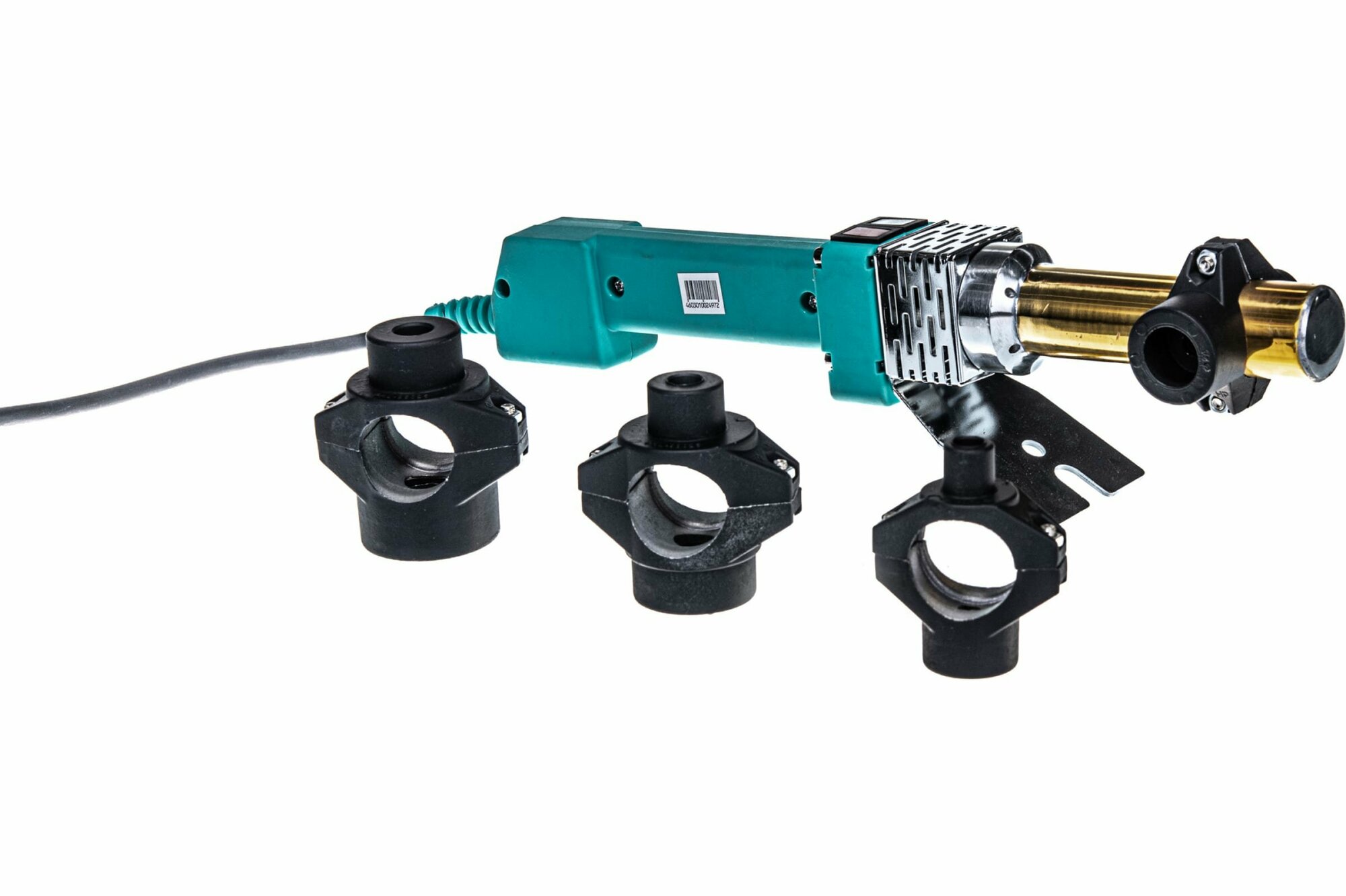 Dual-mode switch with heating indicator; network connection indicator; power cable length: 2 m; heating time: 15 min; equipment: machine for welding plastic pipes, prefabricated welding nozzles 4 sets,