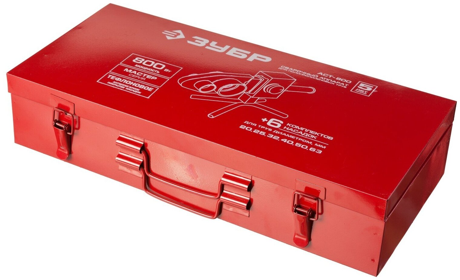 Welding machine for polypropylene pipes, 800W, 50-300C, nozzles 20, 25, 32, 40, 50, 63mm, metal case, 220V ZUBR master AST-800