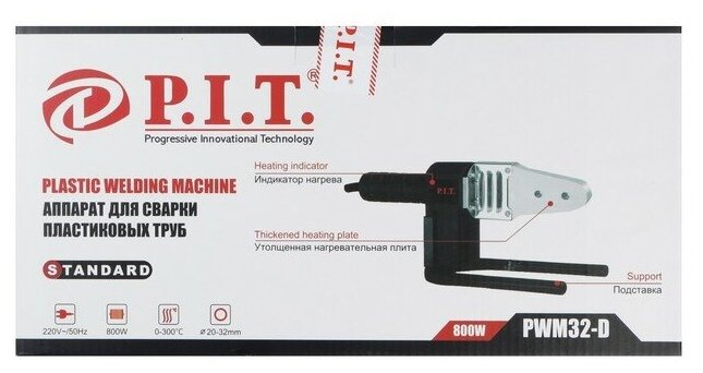 Method of pipe connection: bell-shaped, heater shape: xiphoid, type of welding nozzle: steam, power: 800 W, type of temperature controller: thermostat, maximum heating temperature: 300 °C, type of apparatus: manual, quantity