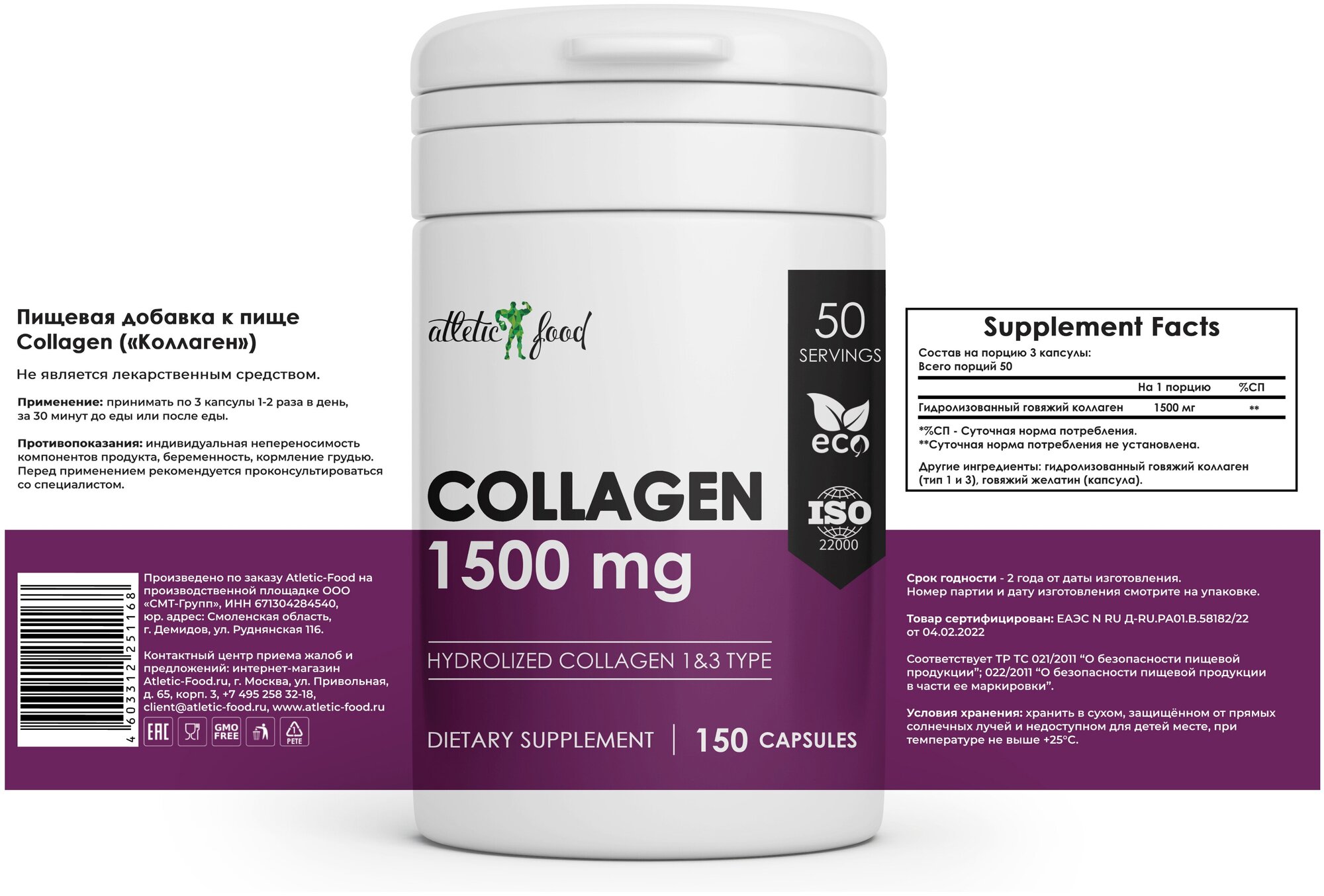 Recommendations for use: Take 3 capsules 1-3 times a day with meals.; composition: Per serving 3 capsules: Hydrolyzed beef collagen - 1500 mg. Other Ingredients: Beef gelatin capsule.