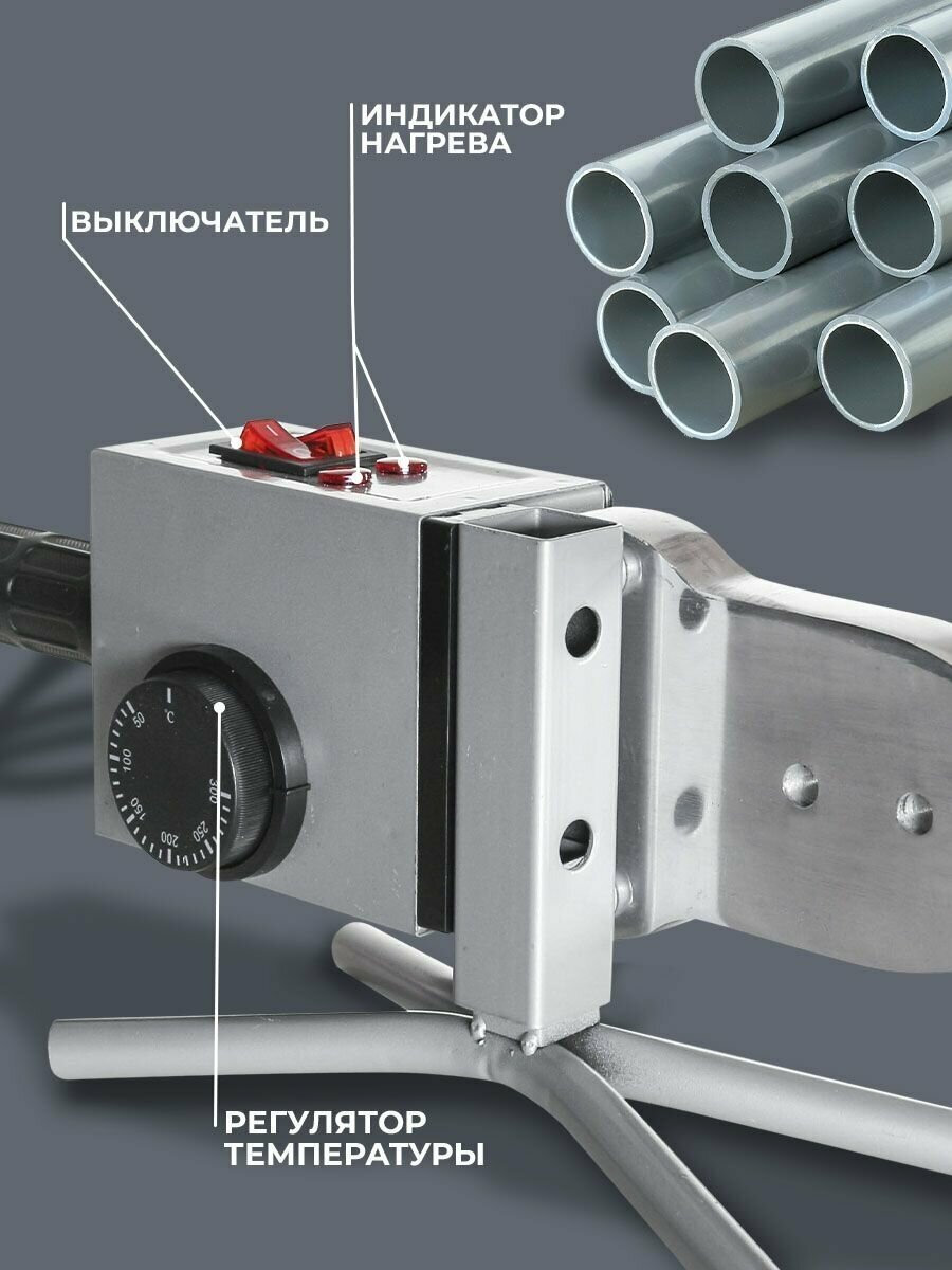 Pipe connection method: socket, heater shape: xiphoid, welding nozzle type: steam, power: 2000 W, temperature controller type: thermostat, maximum heating temperature: 300 °C, time adjustment type with
