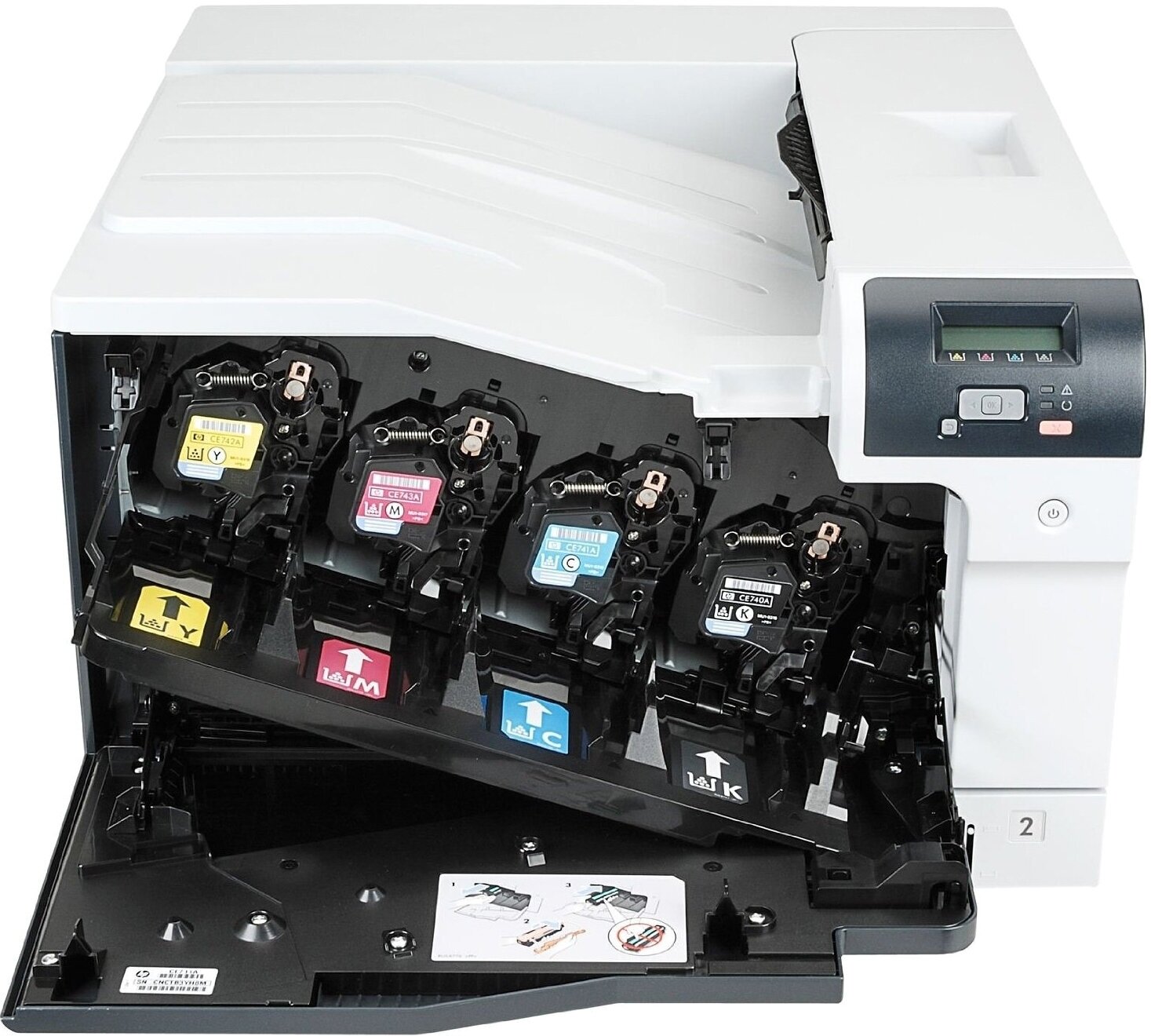 Printer, power cord, getting started guide, CD with software and documentation, built-in interface for Fast Ethernet 10/100 Base-T network, installed black, cyan, magenta and yellow cartridges with