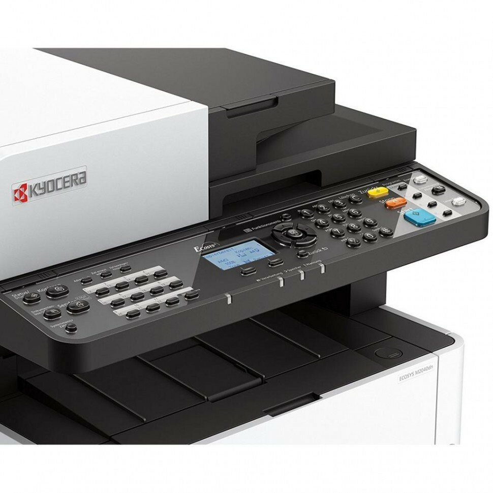 ECOSYS M2040dn MFP, warranty card, power cord, documentation, 250-sheet tray, software CD, 3600-page starter toner cartridge