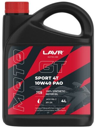 Engine oil LAVR MOTO GT SPORT 4T 10W-40 API SN 4l Ln7728