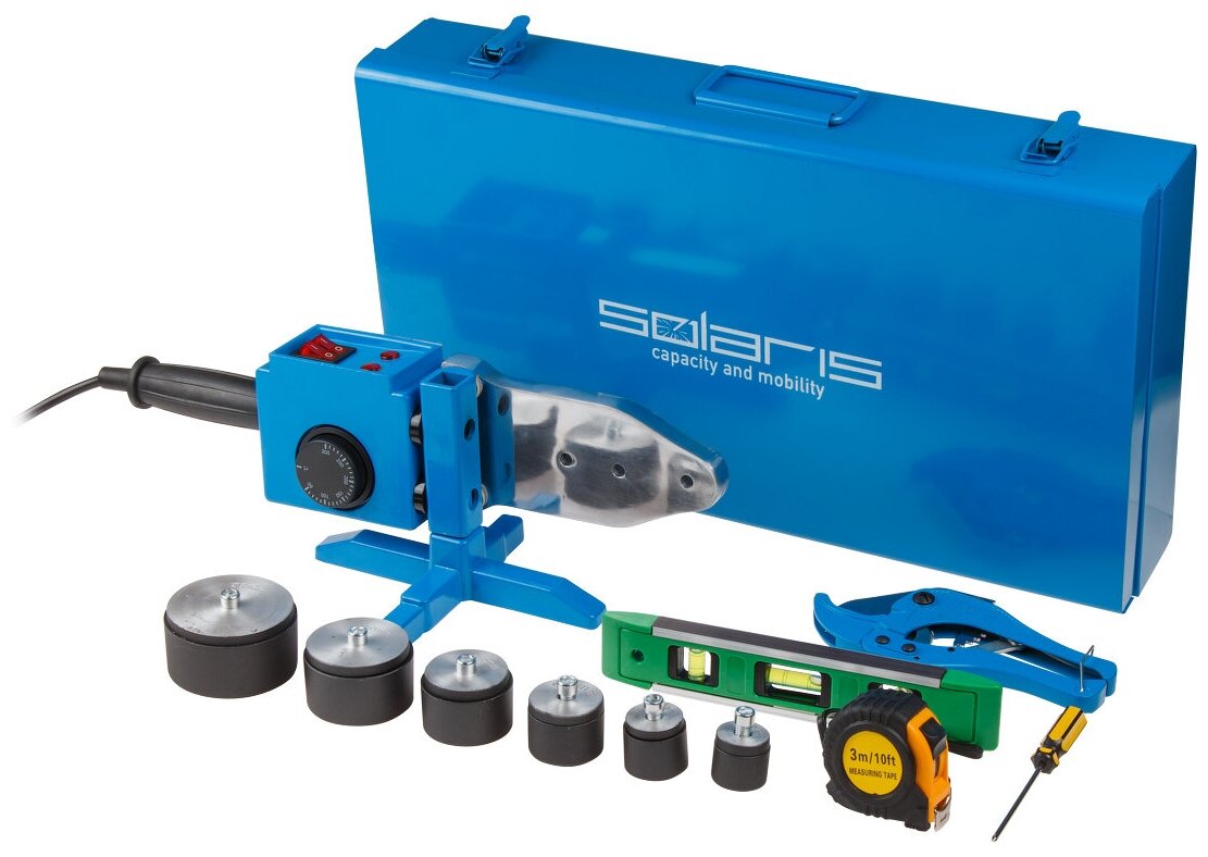 Method of pipe connection: bell-shaped, heater shape: xiphoid, power: 1500 W, maximum heating temperature: 300 °C, type of apparatus: manual, number of phases: one, input voltage: 220-240 V, frequency: 50 Hz, Teflon