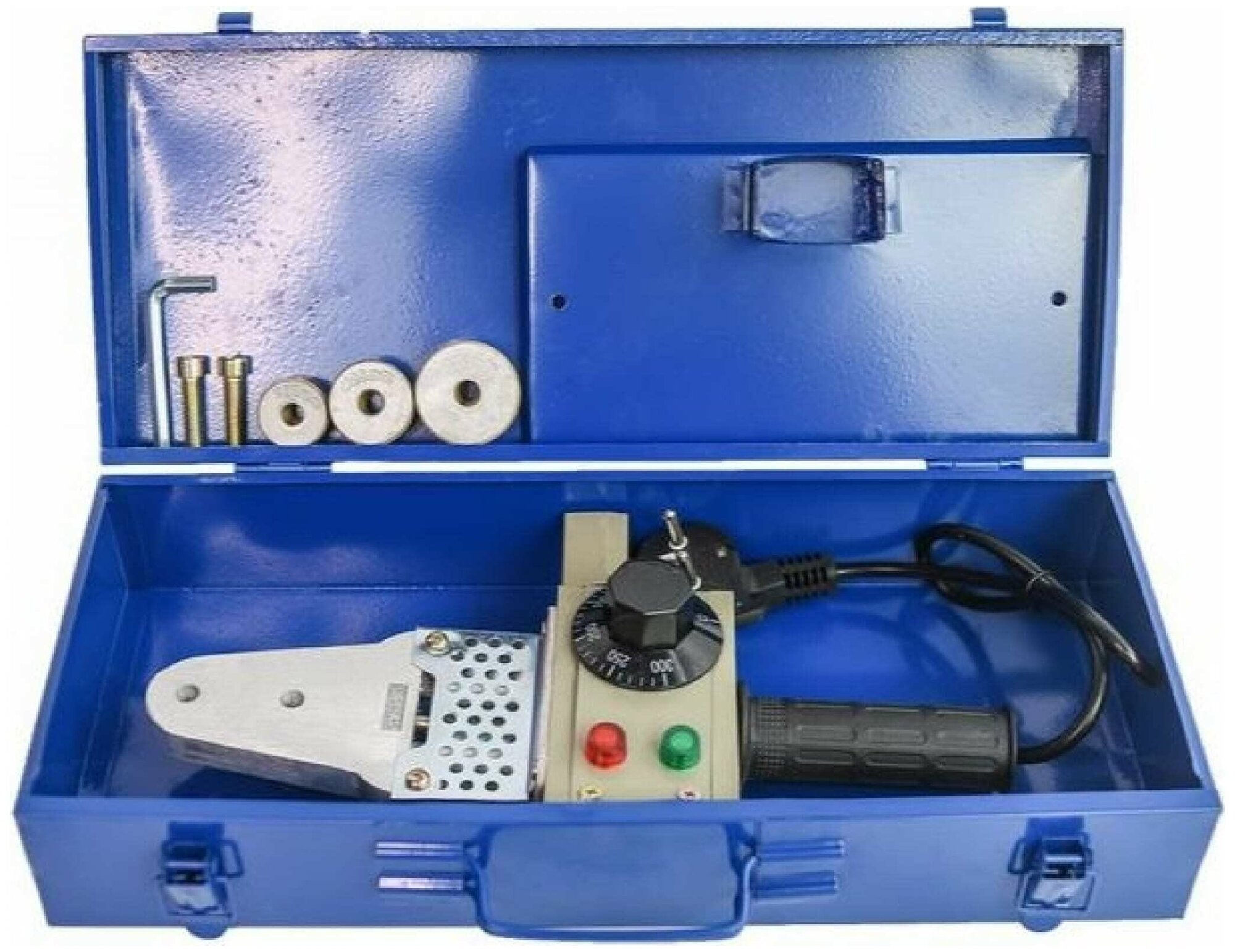 Method of pipe connection: bell-shaped, heater shape: xiphoid, type of welding nozzle: steam, power: 800 W, type of temperature controller: thermostat, maximum heating temperature: 300 °C, type of apparatus: manual, quantity