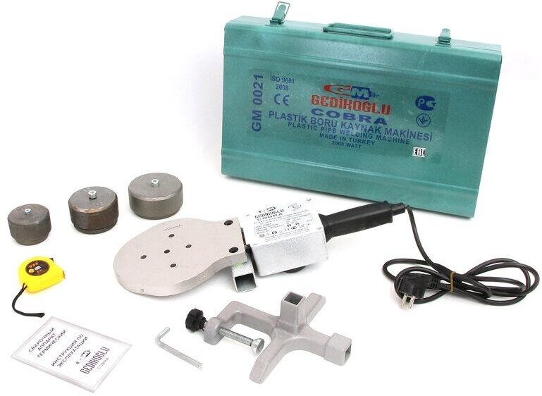 Pipe connection method: socket, heater shape: round, welding nozzle type: steam, power: 2000 W, temperature controller type: thermostat, maximum heating temperature: 300 °C, machine type: manual, input