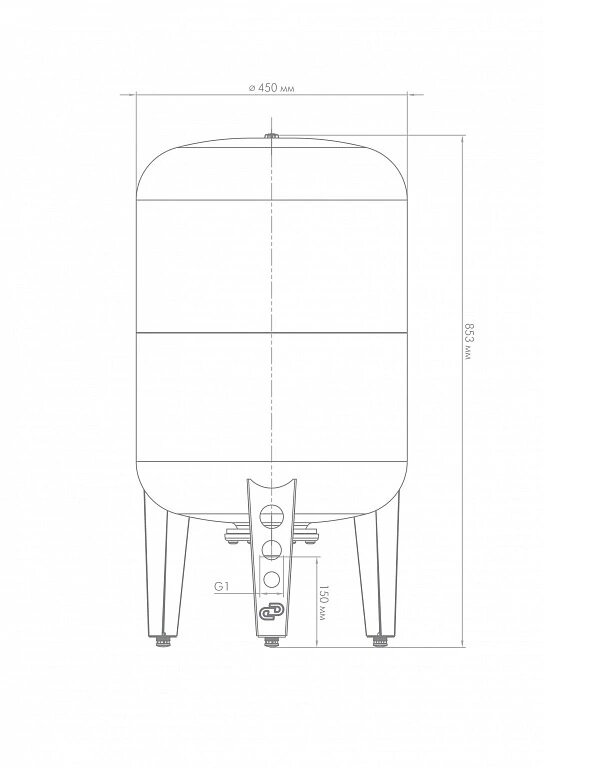Type: hydraulic accumulator, volume: 100 l, installation: vertical, for water supply, connection diameter: 1, flange material: galvanized steel, maximum operating pressure: 8 bar, diameter: 460 mm, height: 880 mm