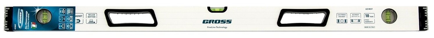 Aluminum, 1000 mm, reinforced, handles, milled, 3 eyes, magnetic Gross