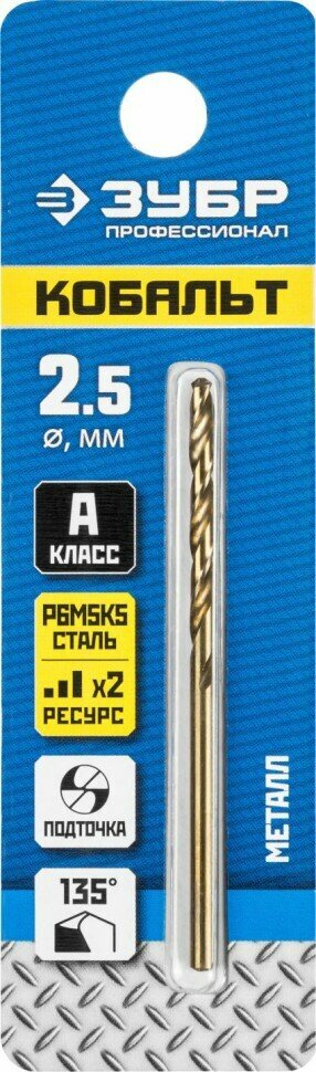 BISON Drill for metal cobalt, steel R6M5K5, class A, Professional 29626-2.5, d:2.5 mm 29626-2.5