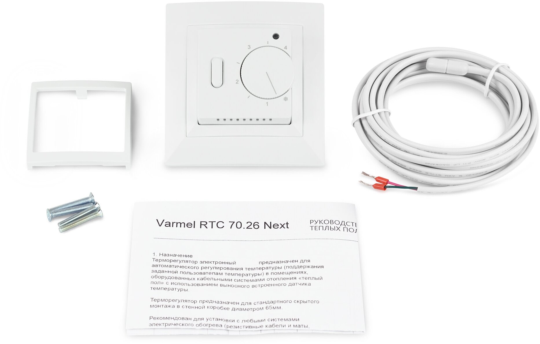 Control type: mechanical, maximum load: 3600 W, minimum temperature: 5 °C, maximum temperature: 40 °C, underfloor heating temperature control, underfloor heating sensor: included, communication type: wired