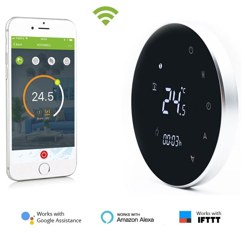 Control type: touch, maximum load: 3500 W, minimum temperature: 5 °C, maximum temperature: 35 °C, connection to a smartphone, air temperature control, floor heating temperature control,