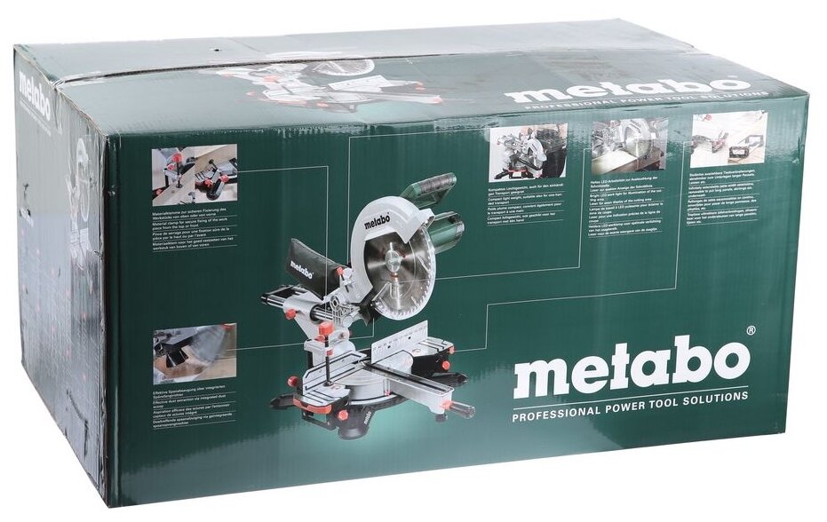 Contents of delivery: Saw blade, 2 built-in table extensions, trim stop, material clamp, saw blade change tool, cable winder, dust collector