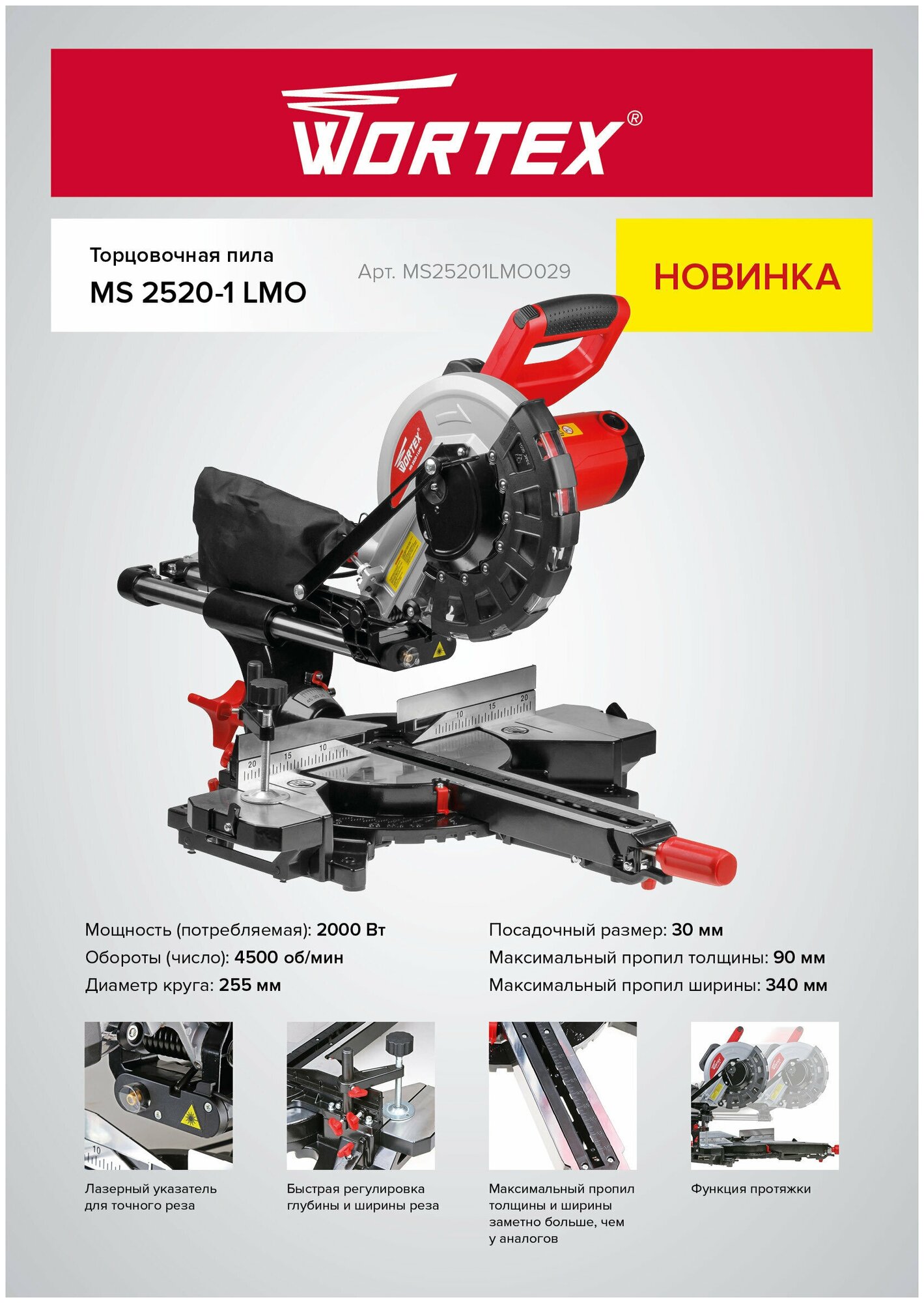 Type: miter saw, laser marker, disc diameter: 216 mm, Power W: 1500, cutting depth 90°: 65 mm, cutting width 90°: 305 mm, with pull, power supply: from the mains, design features: the ability to connect a vacuum cleaner, laser �