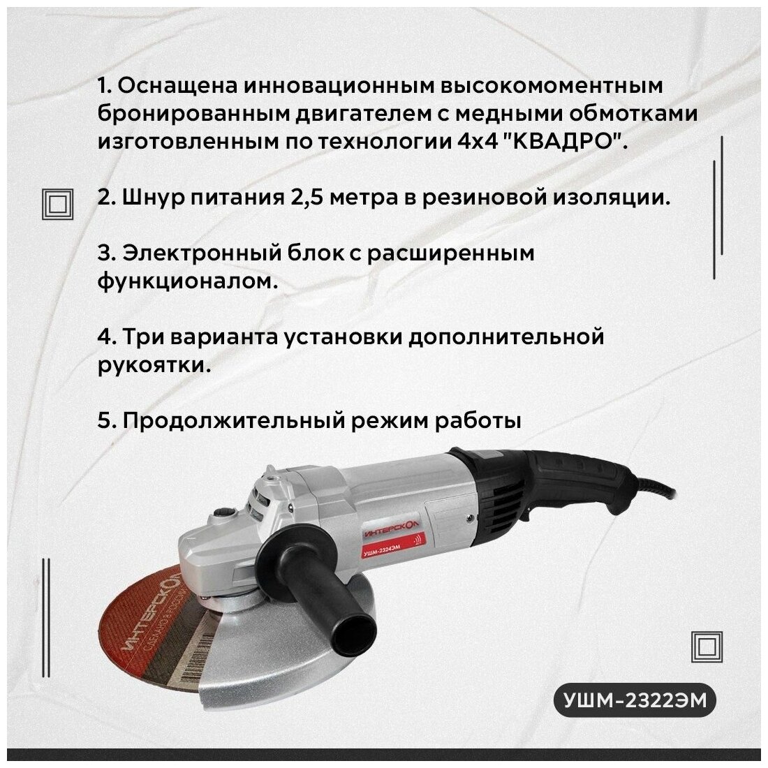 Type of power supply: mains, max. disc diameter: 125 mm, design features: power button lock, additional handle, spindle lock, power consumption: 1450 W, max. disk speed: 11000 rpm, weight