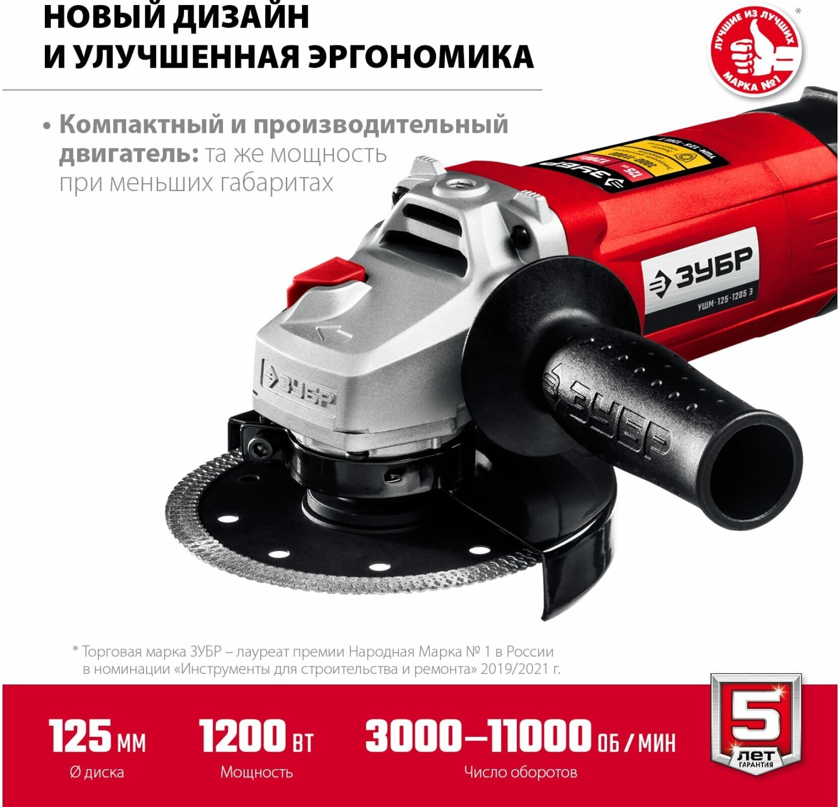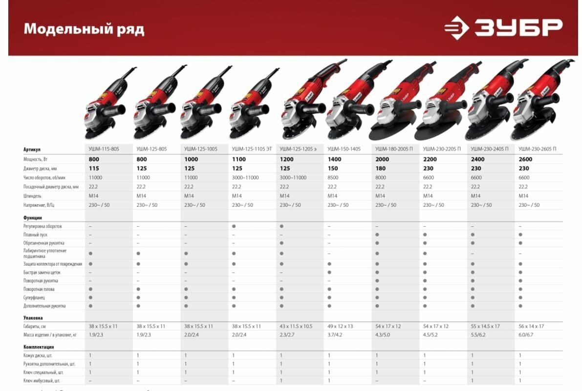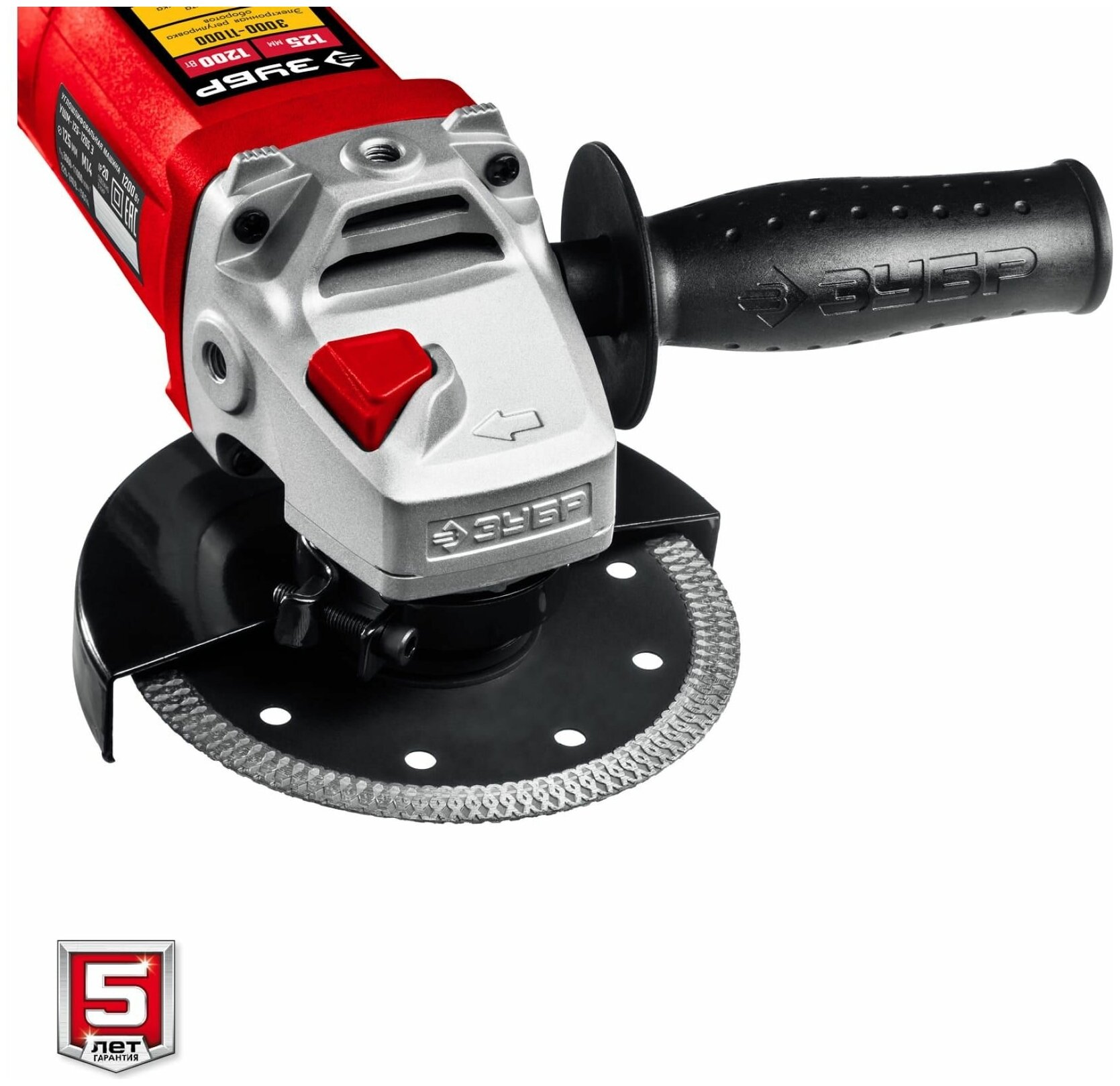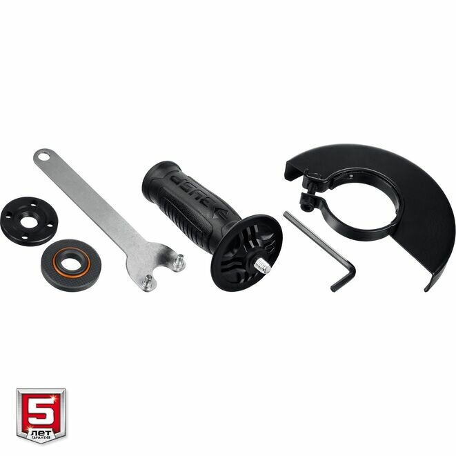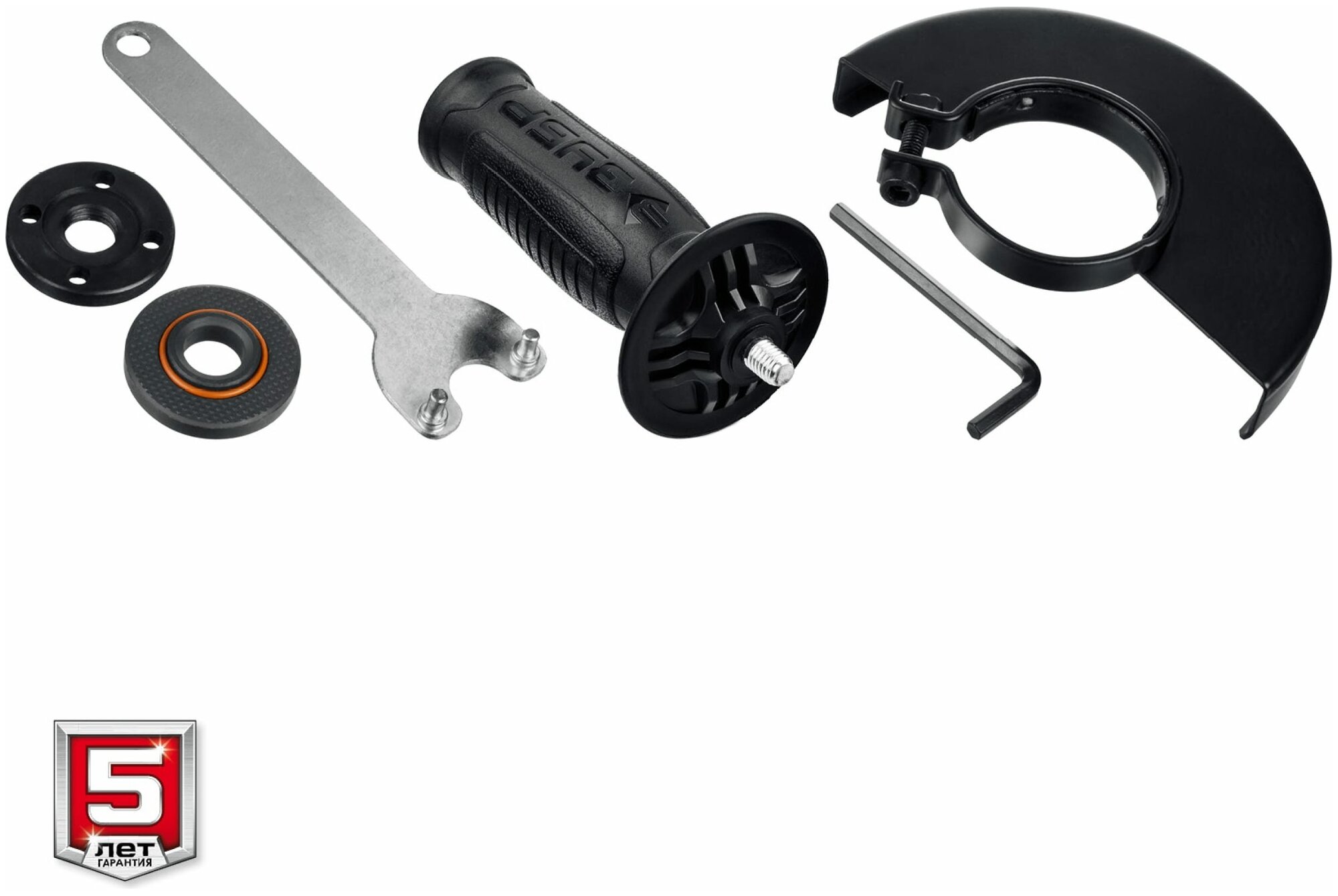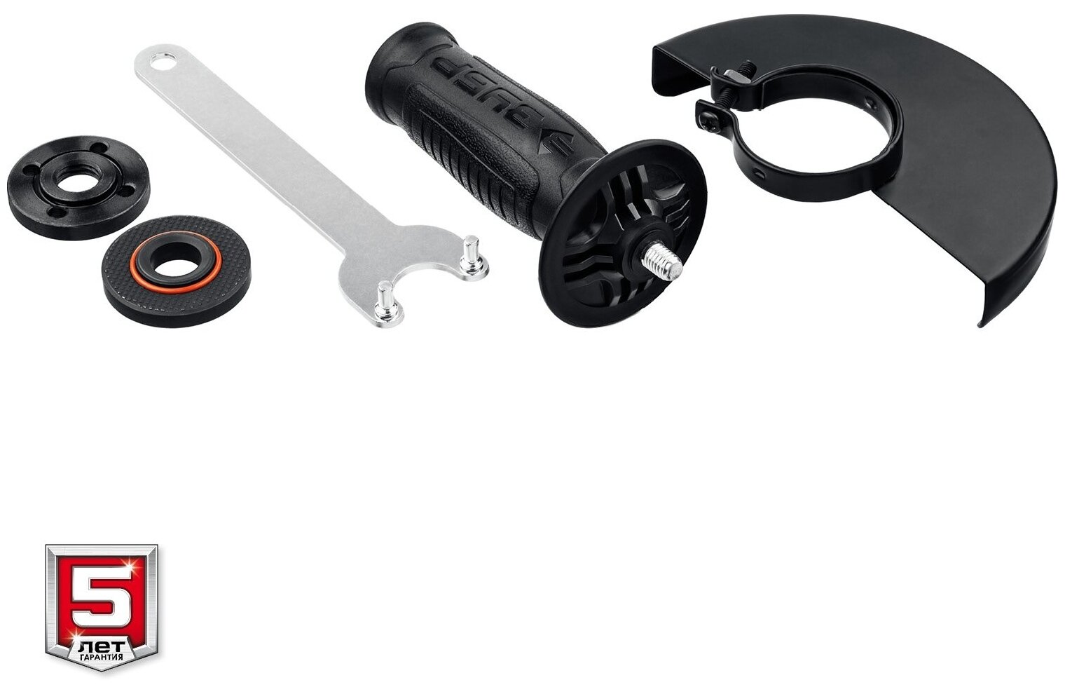 Power type: mains, max. disc diameter: 125 mm, design features: power button lock, two-handed, additional handle, dust collector, spindle lock, brushes indiscriminately replaced, Protective cover, Handle
