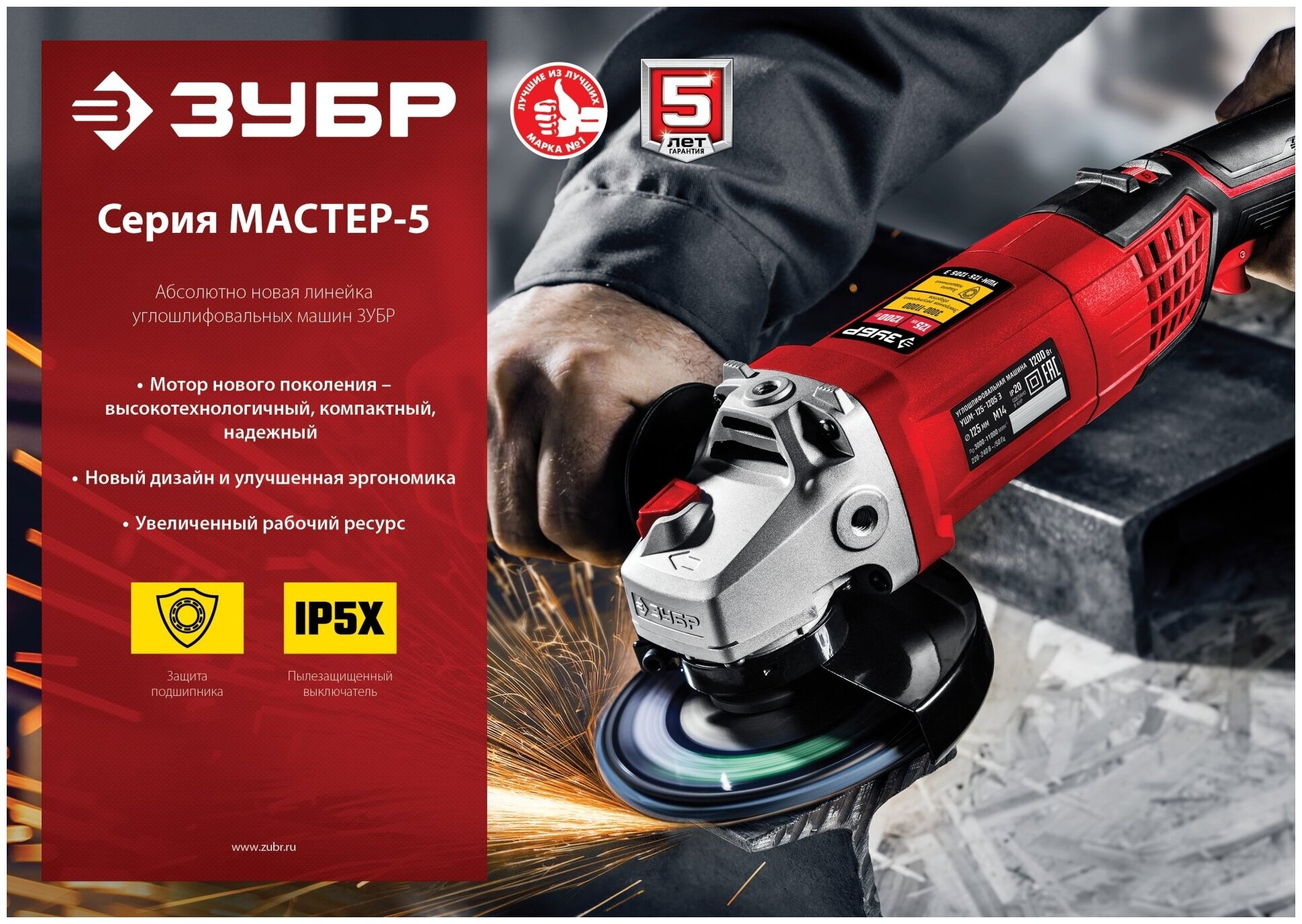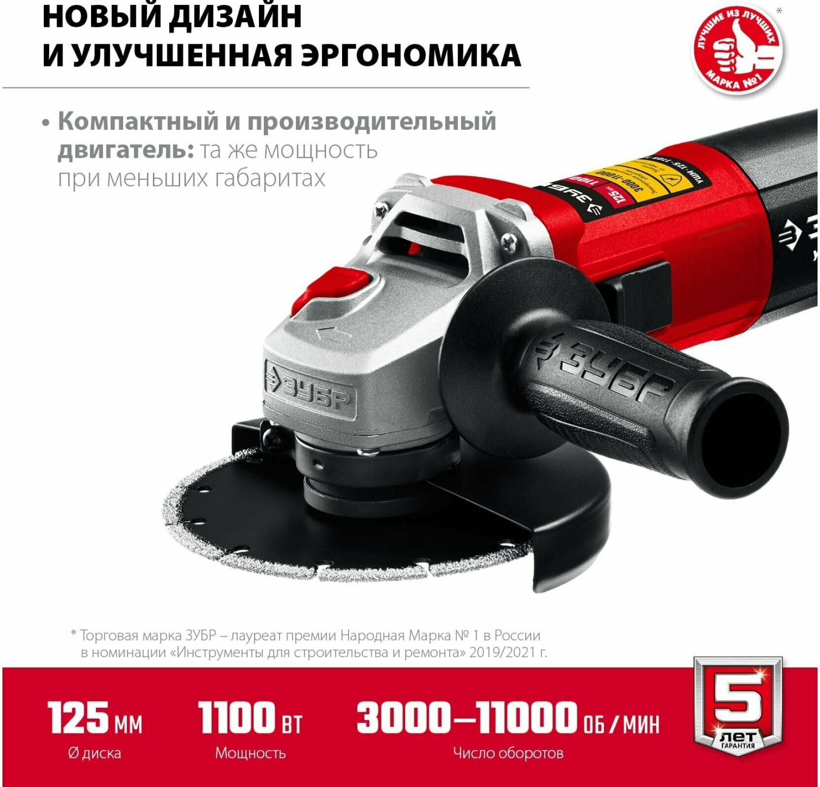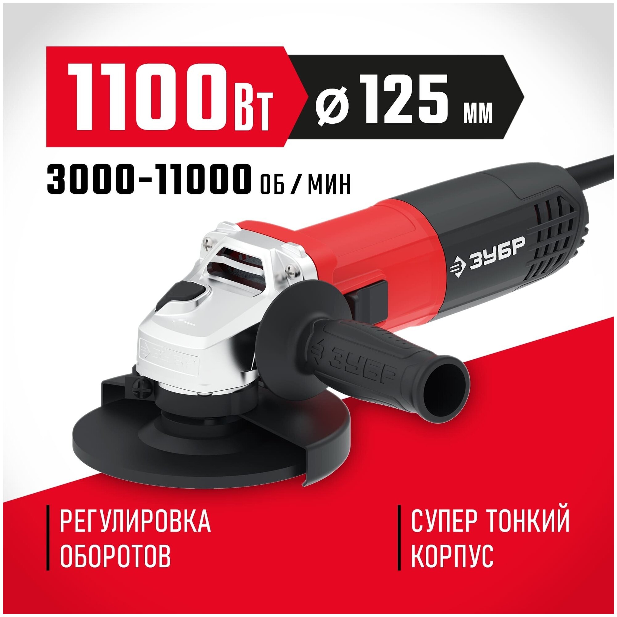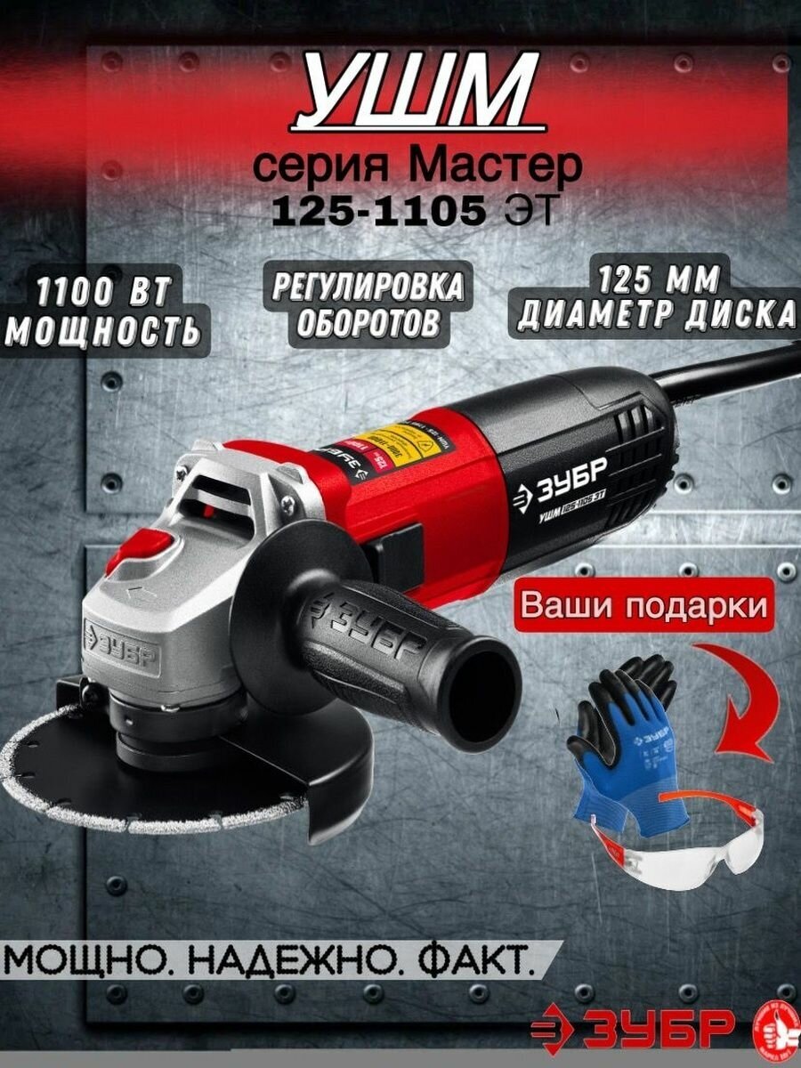 Advantages of ZUBR USHM-125-1105 ET New compact motor due to very dense winding laying Labyrinth seal of the front bearing for dust protection Reliable gearbox with a large gear ratio Thin