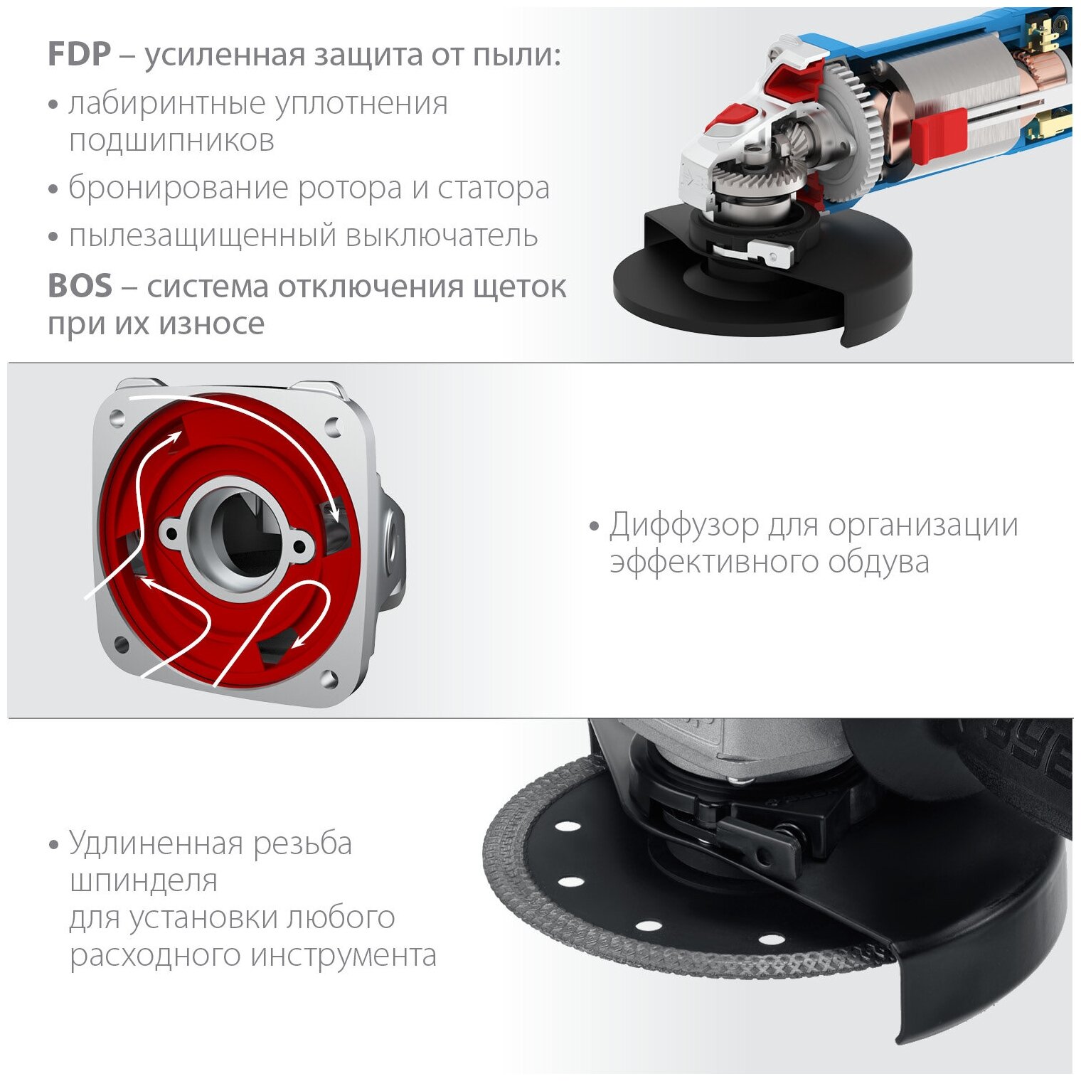 Type of power supply: mains, max. disc diameter: 125 mm, design features: power button lock, additional handle, spindle lock, power consumption: 1450 W, max. disk speed: 11000 rpm, weight