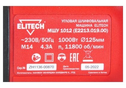 Type of power supply: mains, max. disc diameter: 125 mm, design features: power button lock, additional handle, spindle lock, power consumption: 1450 W, max. disk speed: 11000 rpm, weight
