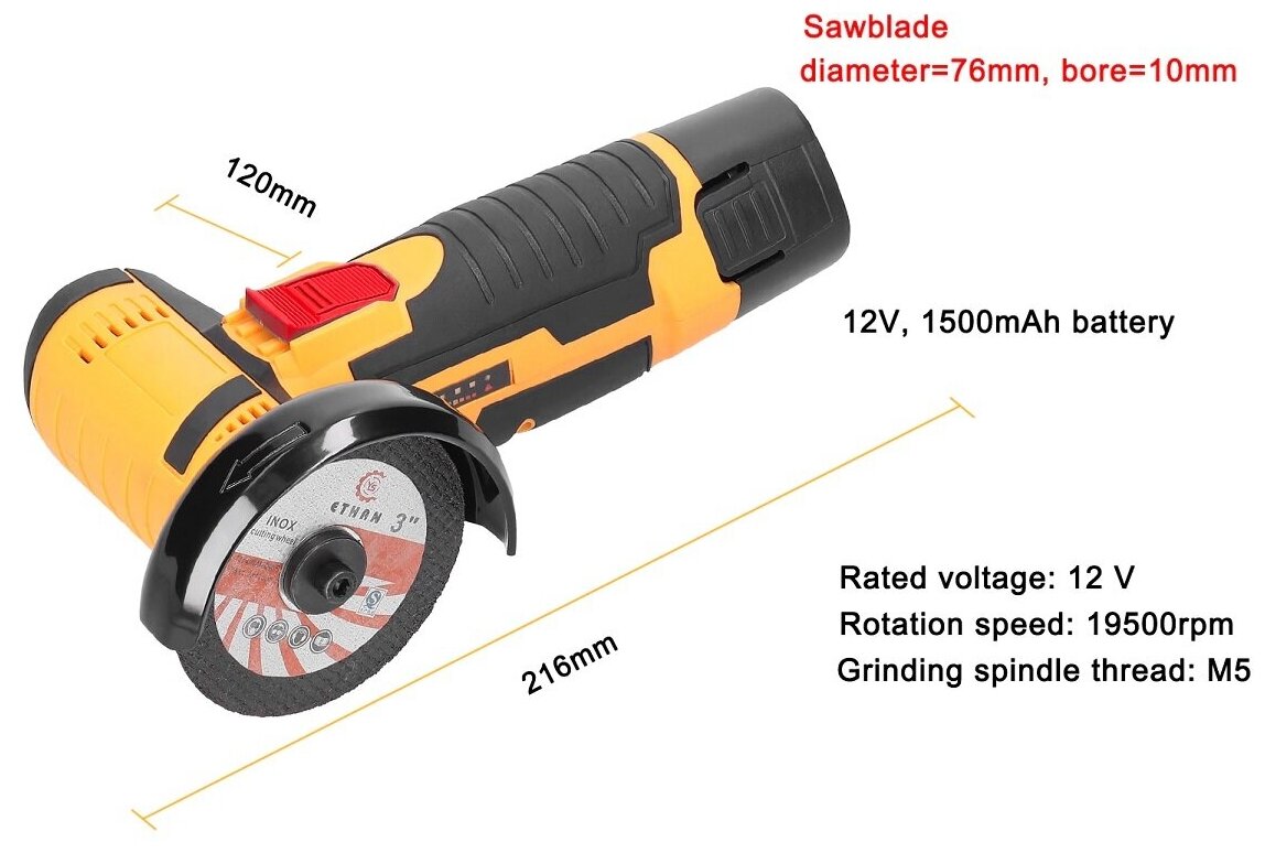 Cordless angle grinder Booox 12V 1.5Ah E22816EU with extra. in circles