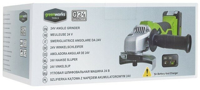 Power type: battery, max. disc diameter: 115 mm, design features: additional handle, max. disk rotation speed: 9000 rpm, weight: 1.40 kg, battery voltage: 24 V