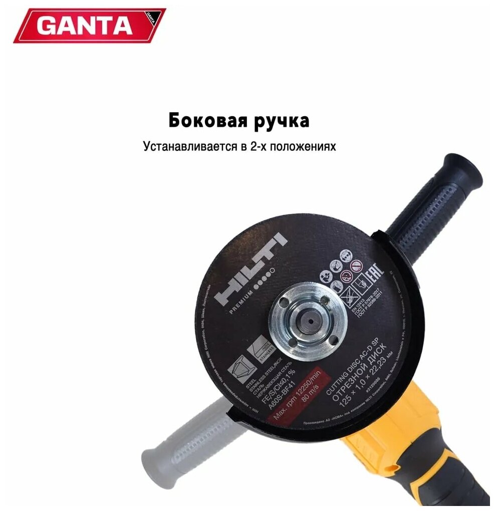 Type of power supply: mains, max. disc diameter: 125 mm, design features: power button lock, additional handle, spindle lock, power consumption: 1450 W, max. disk speed: 11000 rpm, weight