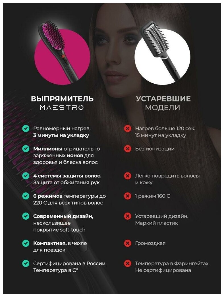 Type: straightening comb, coating: ceramic, purpose: straightening, styling, additional functions: automatic shut-off, fast heating, overheating protection, ionization, maximum heating temperature