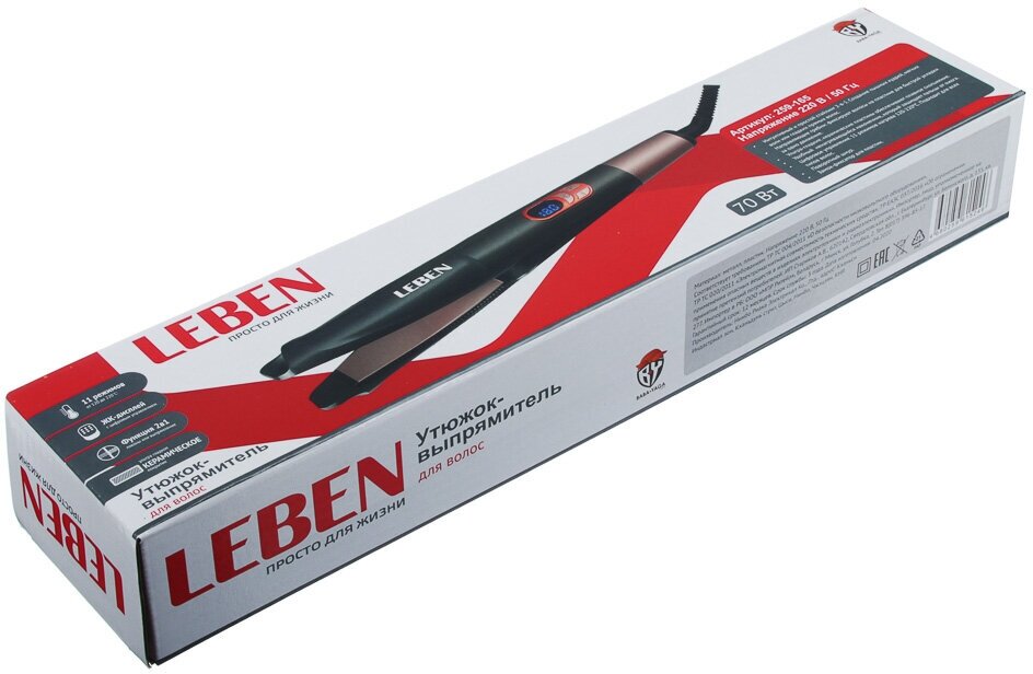 Type: straightener, coating: ceramic, type of curling iron: curling iron, purpose: straightening, curling, styling, maximum heating temperature: 200 °C, number of heating modes: 11, power: 70 W, features: display