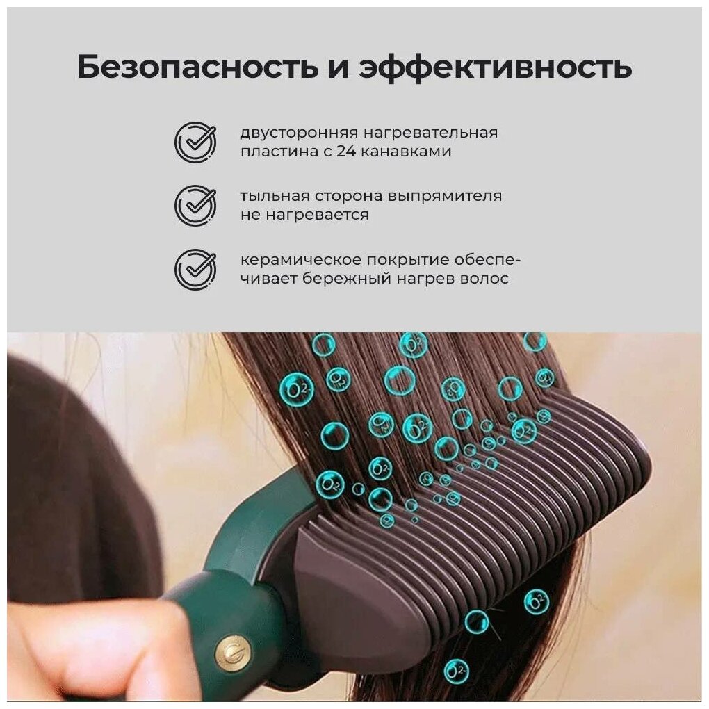 Electric hair straightener comb, straightening curling iron, green